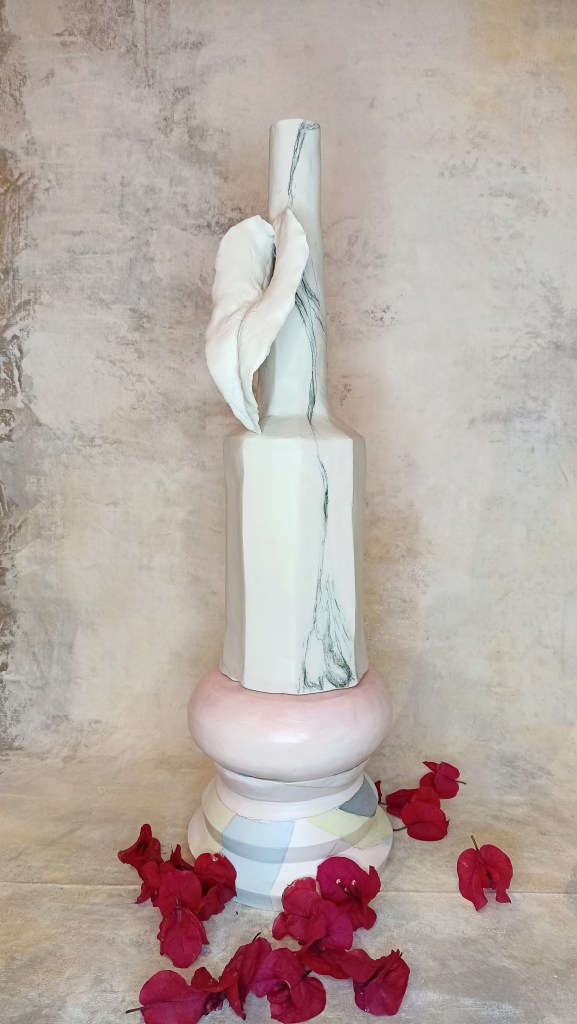 La céramique m’offre une grande diversité de moyens d’expression en alliant volume et picturalité
